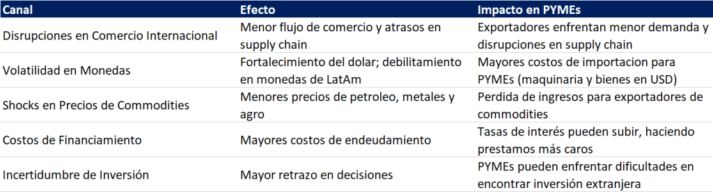 En el siguiente cuadro se resumen los canales de impacto, junto con los efectos específicos y cómo podrían afectar a las PYMEs: